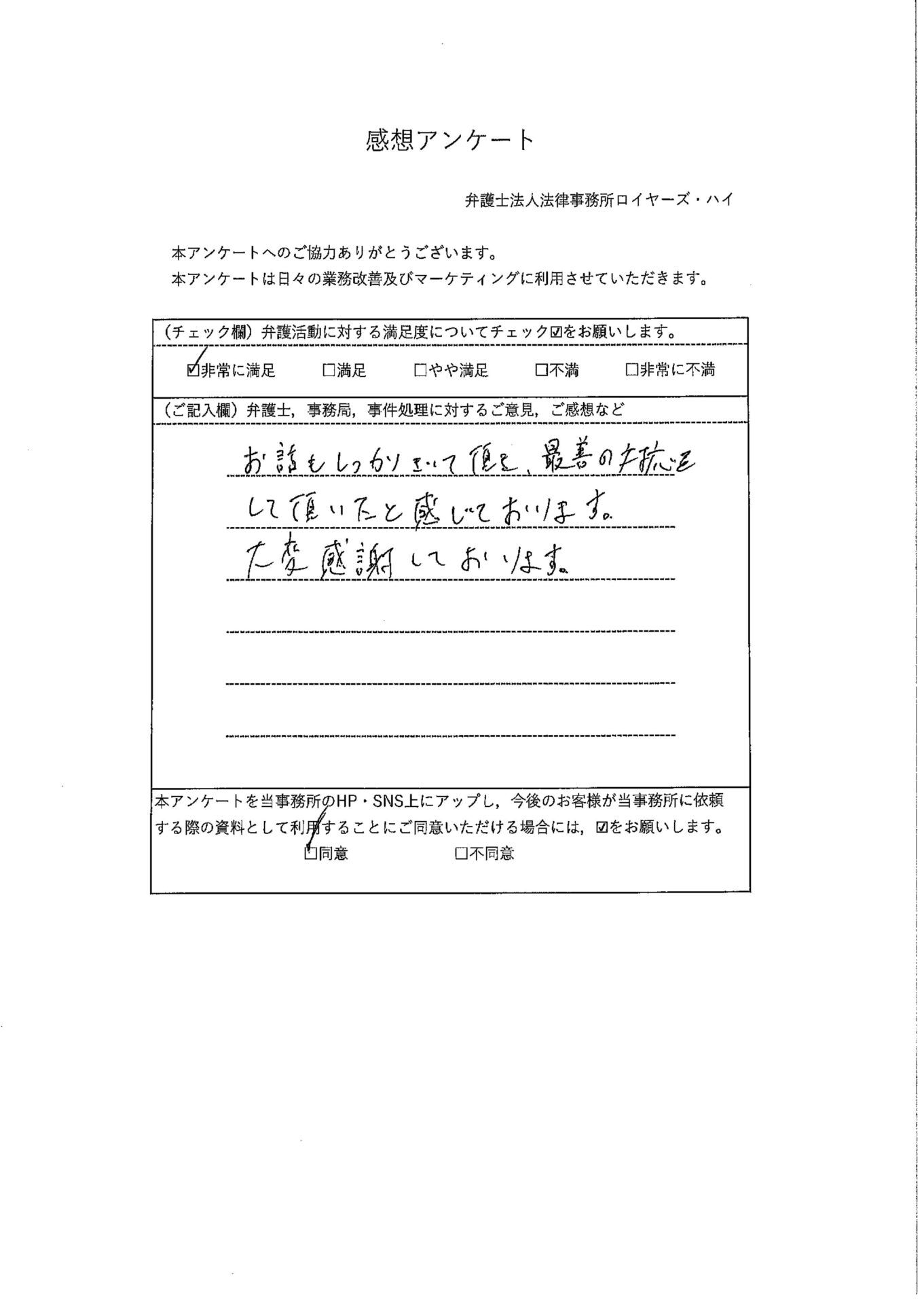 (20代 男性 会社員)「お話もしっかりきいて頂き、最善の対応をして頂いたと感じております。大変感謝しております。」